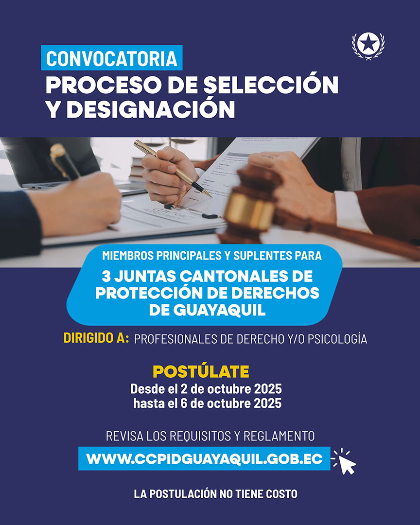 El Consejo Cantonal de Protección Integral de Derechos de Guayaquil (CCPID-G) es una entidad pública que tiene como objetivo central la defensa y promoción de los derechos de los grupos de atención prioritaria, como niños, niñas, adolescentes, personas con discapacidad, adultos mayores, mujeres víctimas de violencia, entre otros.